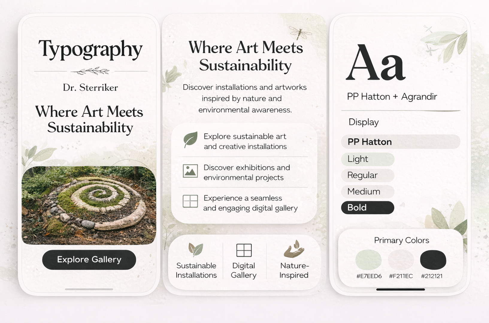 The design of the Environmental Art website is centered around a minimal, nature-inspired, and visually immersive experience that reflects sustainability and artistic expression. The UI uses a clean, grid-based layout with large image galleries, allowing artwork to remain the primary focus while maintaining a smooth and intuitive browsing experience. A natural color palette with earthy tones such as green, beige, brown, and off-white is used to represent environmental themes and create a calm, organic feel. Clean typography and balanced spacing ensure readability, while strong visual hierarchy helps users easily navigate between exhibitions, projects, and artist information. The design emphasizes high-quality visuals, full-width image sections, and interactive galleries to enhance storytelling and user engagement. Subtle animations, hover effects, and smooth transitions are used to create a modern and engaging digital experience without distracting from the artwork. Built with a mobile-first and responsive approach, the website ensures consistent performance across devices. It is optimized for fast loading speed, image compression, SEO-friendly structure, and accessibility standards. Features like lazy loading, optimized media, and structured content improve performance and search engine visibility. Overall, the design delivers a high-performance, scalable, and user-centric digital gallery that combines art, sustainability, and modern web design to create a unique and engaging experience.