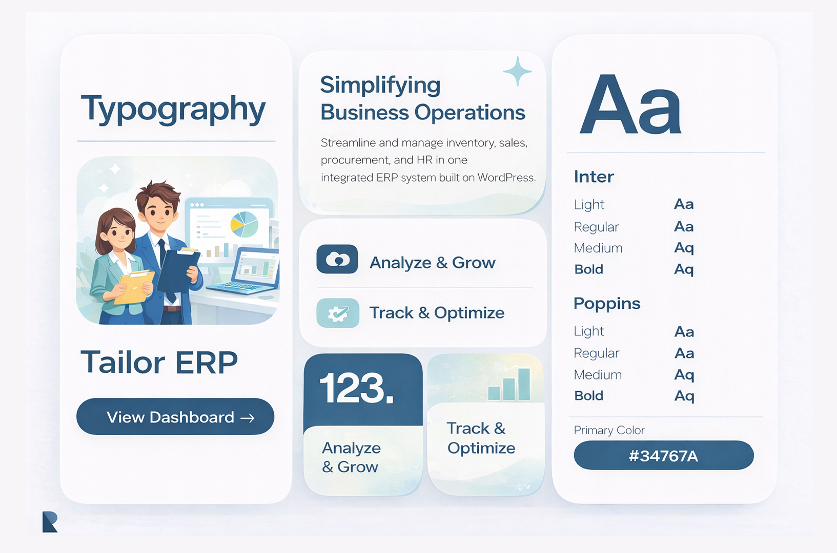 The design of Tailor ERP focuses on creating a clean, professional, and data-driven user interface that simplifies complex business operations. Built on WordPress, the UI follows a structured dashboard-based layout where users can easily access modules like inventory, sales, procurement, accounting, and HR from a centralized navigation system. A modern color palette with shades of blue, white, and neutral tones is used to reflect trust, clarity, and professionalism. The interface uses clean typography, consistent spacing, and clear visual hierarchy to ensure that data, reports, and key metrics are easy to read and understand. The design includes interactive dashboards, data tables, charts, and reporting modules that help users monitor business performance in real time. Card-based components, sidebar navigation, and intuitive icons enhance usability and make the system easy to navigate even for non-technical users. Tailor ERP is designed with a responsive and mobile-friendly approach, ensuring accessibility across devices. Performance optimization techniques such as fast loading pages, optimized assets, and efficient data handling improve user experience. Security-focused design elements like role-based access control and secure login interfaces ensure data protection. Overall, the design delivers a scalable, high-performance, and user-centric ERP interface that improves productivity, streamlines workflows, and supports efficient business management.